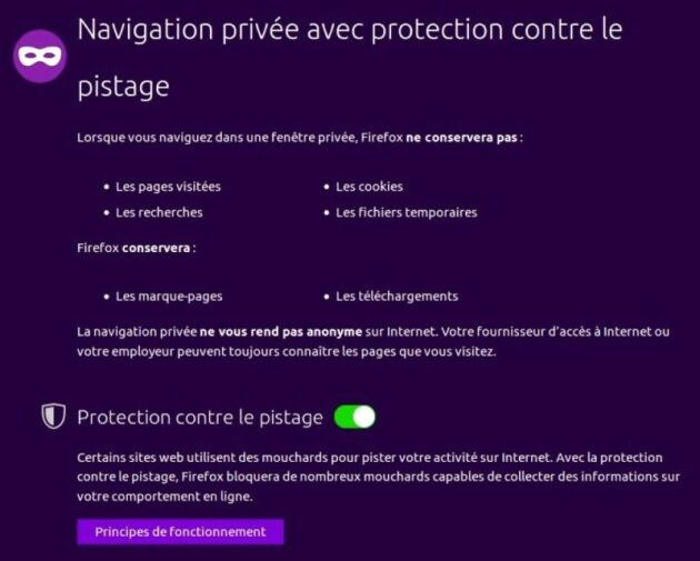 Comme il est bien précisé, une fenêtre de navigation privée NE REND PAS ANONYME sur internet !